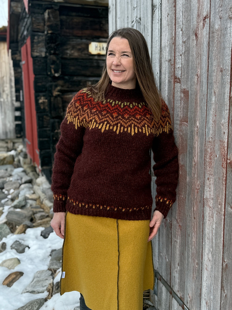 10016 Cecilie Grande, strikket i Alafosllopi, designet av Tove Richter